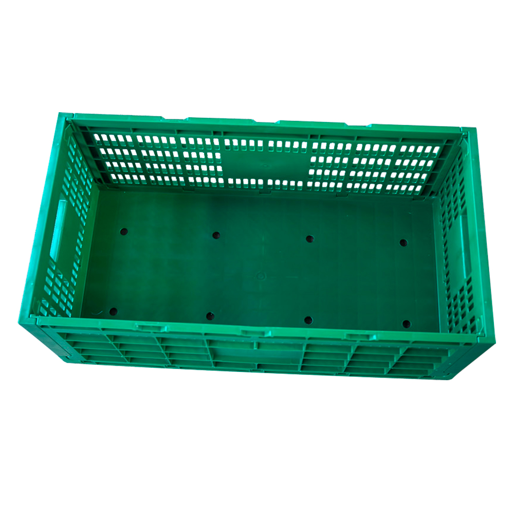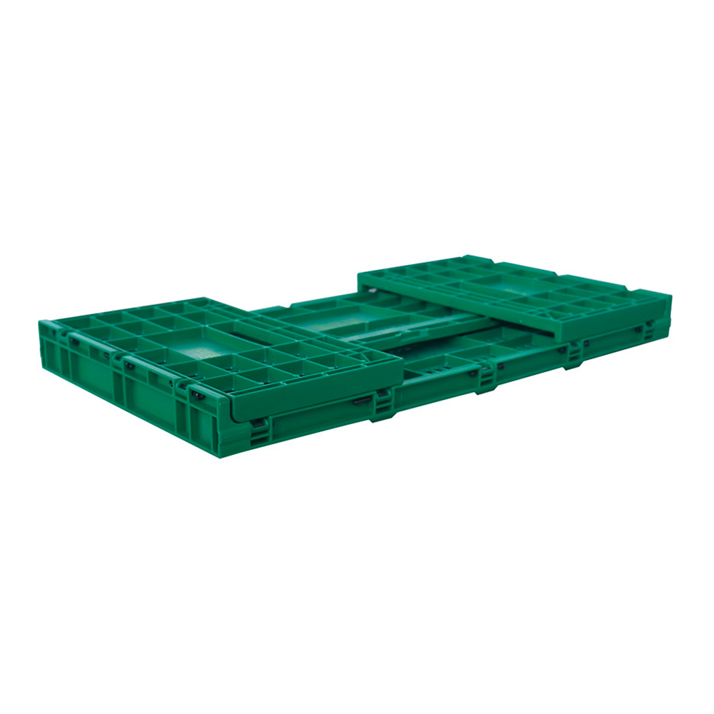Kotak lipat plastik mengguna pakai piawaian antarabangsa dan bekerjasama dengan jenis 1210, 1208 jenis standard Eropah atau jenis T11 pallet standard Jepun, yang boleh merealisasikan pengendalian berjentera, meningkatkan kecekapan perolehan, dan mengawal kadar kerosakan kargo; ia juga boleh digunakan dengan kereta kura-kura untuk menyusun dan bergerak.